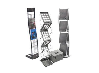 We offer a wide range of trade show literature racks in three styles: fully “collapsible” racks, an excellent choice if transportation is your biggest issue; “flat packs” and “modular” styles which snap apart for ease of packing.