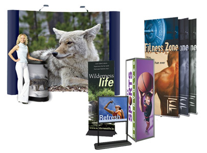 Les présentoirs pop-up réunissent autant la puissance et la fiabilité que le style. Simples à installer et à démonter, ils n’ont pratiquement pas de pièces fragiles. Il existe un vaste choix de configuration dans les systèmes de présentation, soit des trousses de base pour un dessus de table ou des présentoirs de 20 pieds de longueur. Ces derniers sont disponibles dans diverses formes et en panneaux murals graphiques sans trou, à vous couper le souffle.