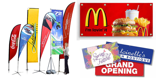 Nous comptons parmi notre vaste gamme de bannières idéales pour la publicité d’entreprise ou les foires commerciales, des stands escamotables à simple ou double face, des stands télescopiques à simple ou double face, des murals, et des bannières vinyles intérieures ou extérieures, à grande échelle ou dessus de table. Des stands motorisés avec défilement de bannières sont également disponibles.